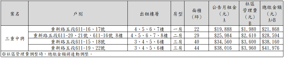 案名:三重中興青年社會住宅(都更中繼住宅)