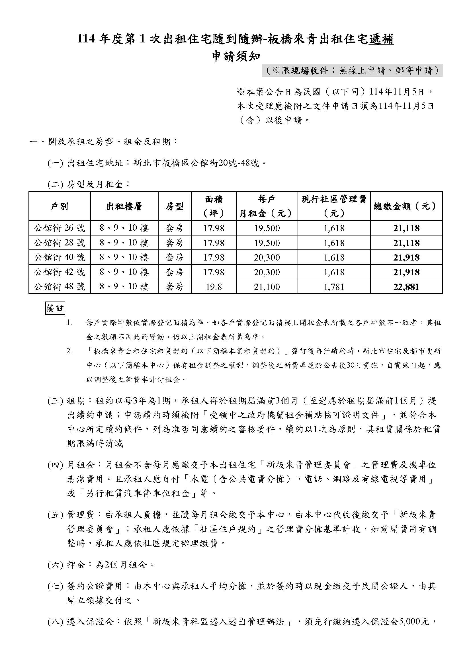114年度第1次出租住宅隨到隨辦-板橋來青出租住宅遞補※僅限現場收件;不受理郵寄方式申請申請期限:自民國114年11月19日(三)起至114年12月2日(二)止