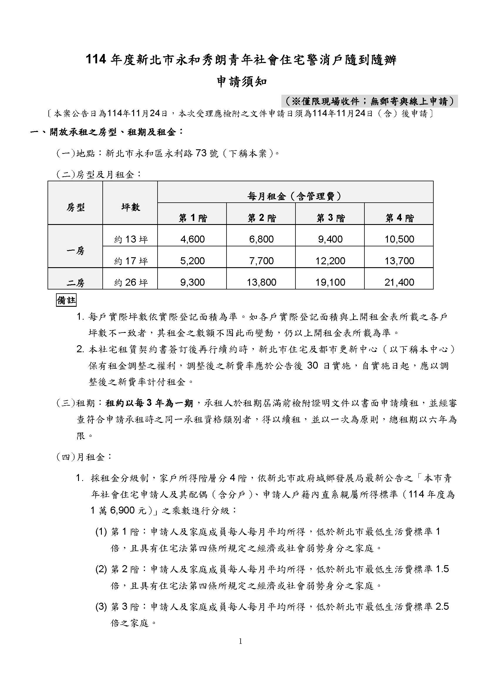 114年度新北 市永和秀朗青年社會住宅警消戶隨到隨辦※僅限現場收件;不受理郵寄方式申請申請期限:自民國114年12月1日(一)起至115年1月30日(五)止