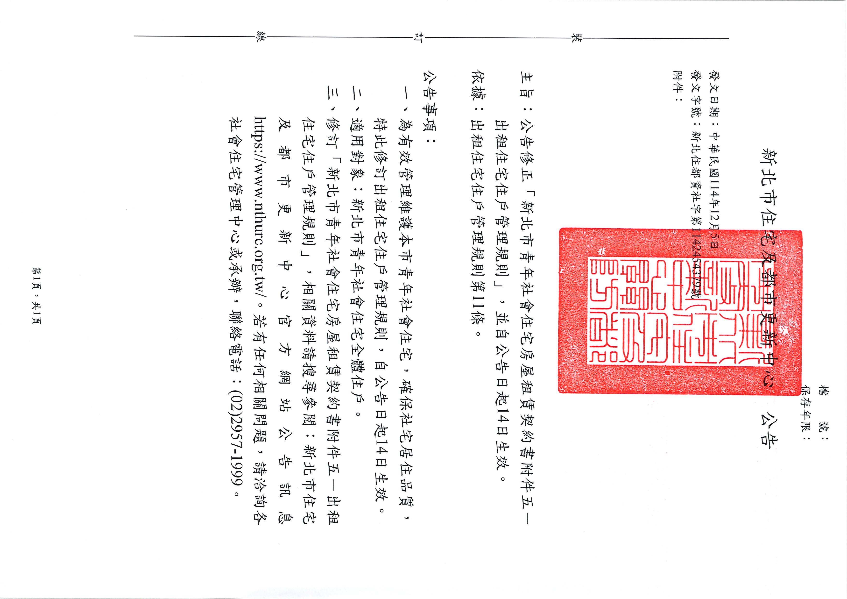 公告修正「新北市青年社會住宅停車場管理要點」,並自公告日起14日生效。